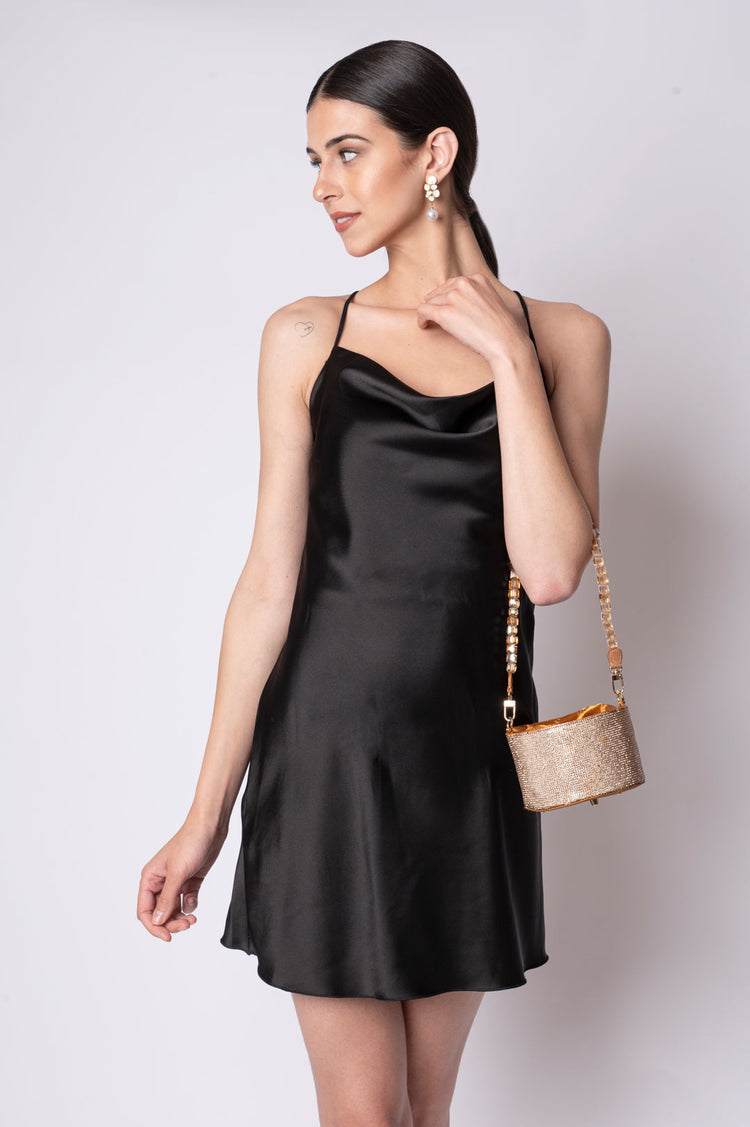 • Crafted in crystal mesh and satin fabric