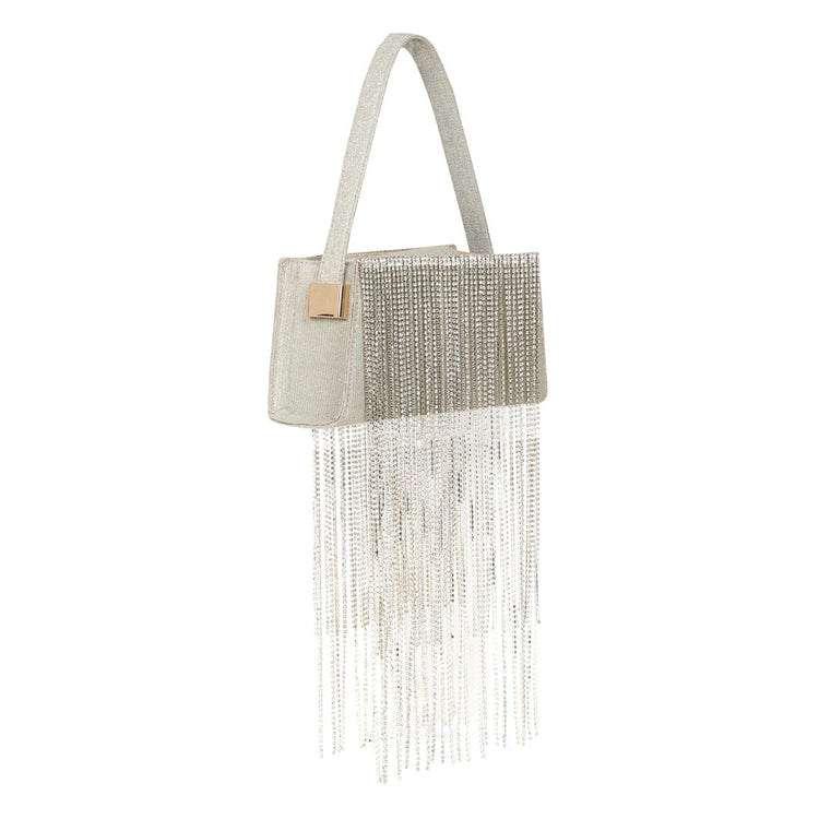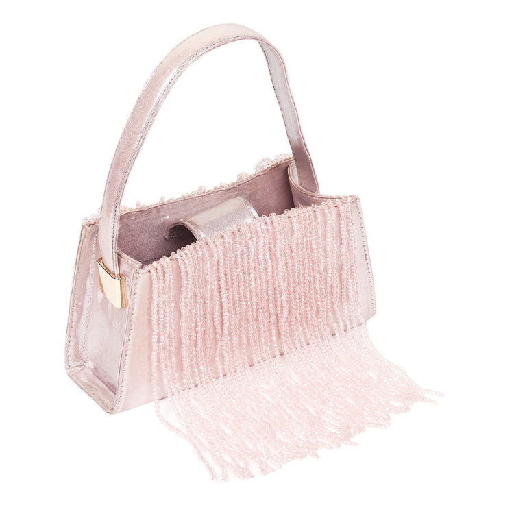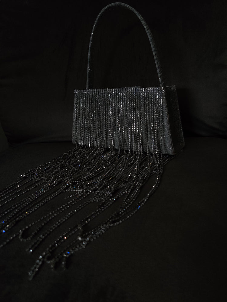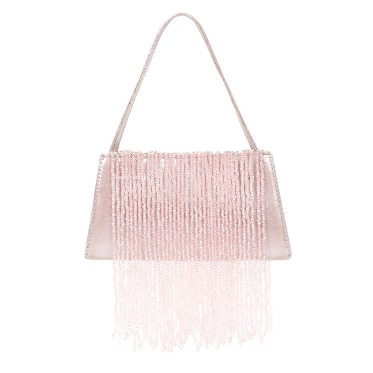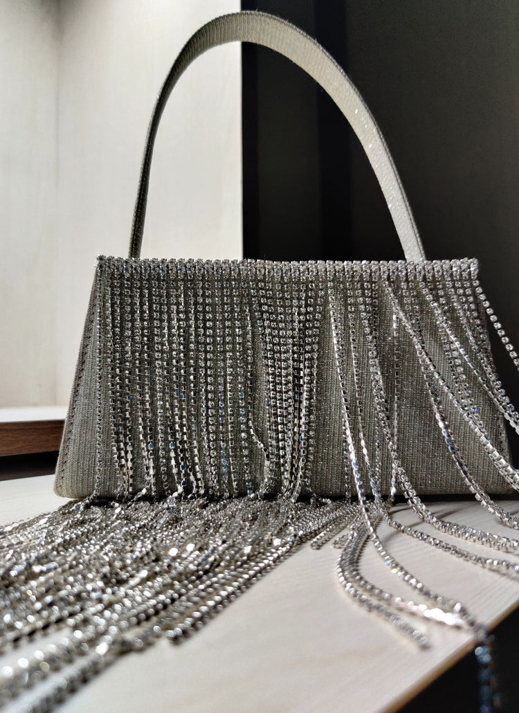 Get ready to glisten with our new season favorite, The Fringe. Showcasing beads tassels, this conversation starter can be worn with bridal wear or your casual outfits. Features a single compartment and a short handle. It's perfect to add brilliance and elegance to all looks.