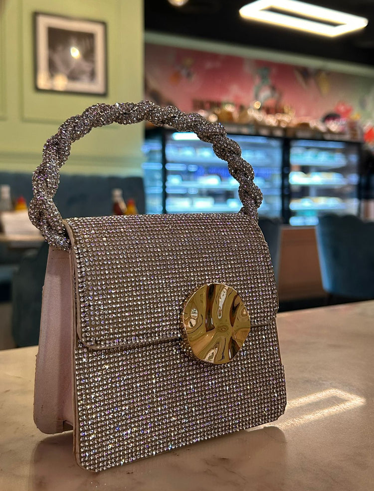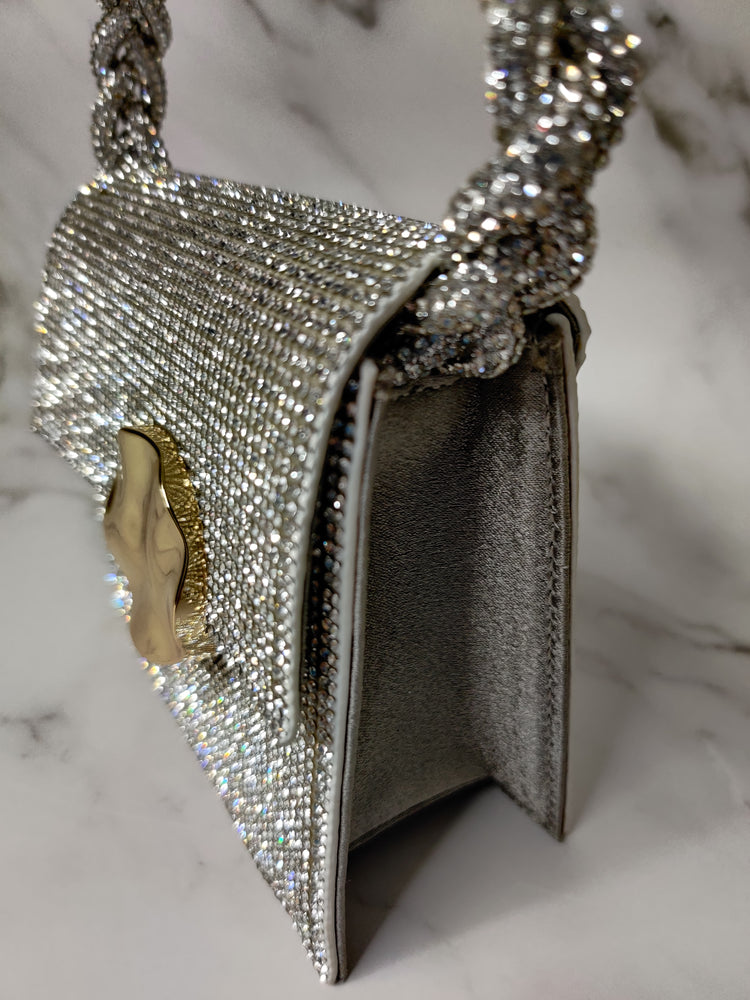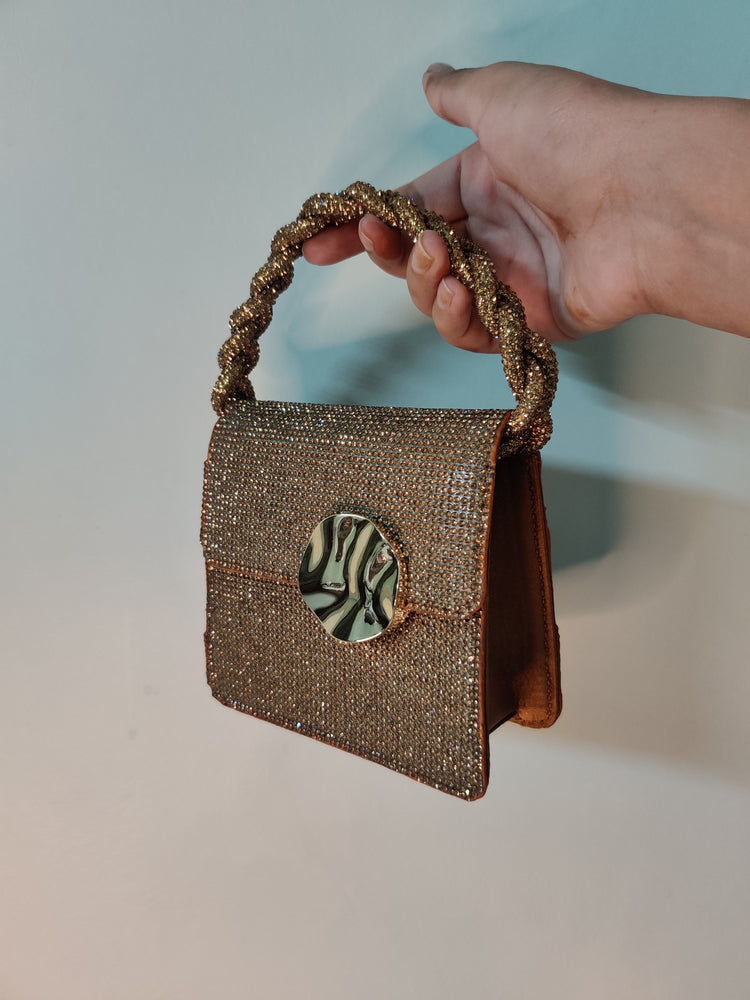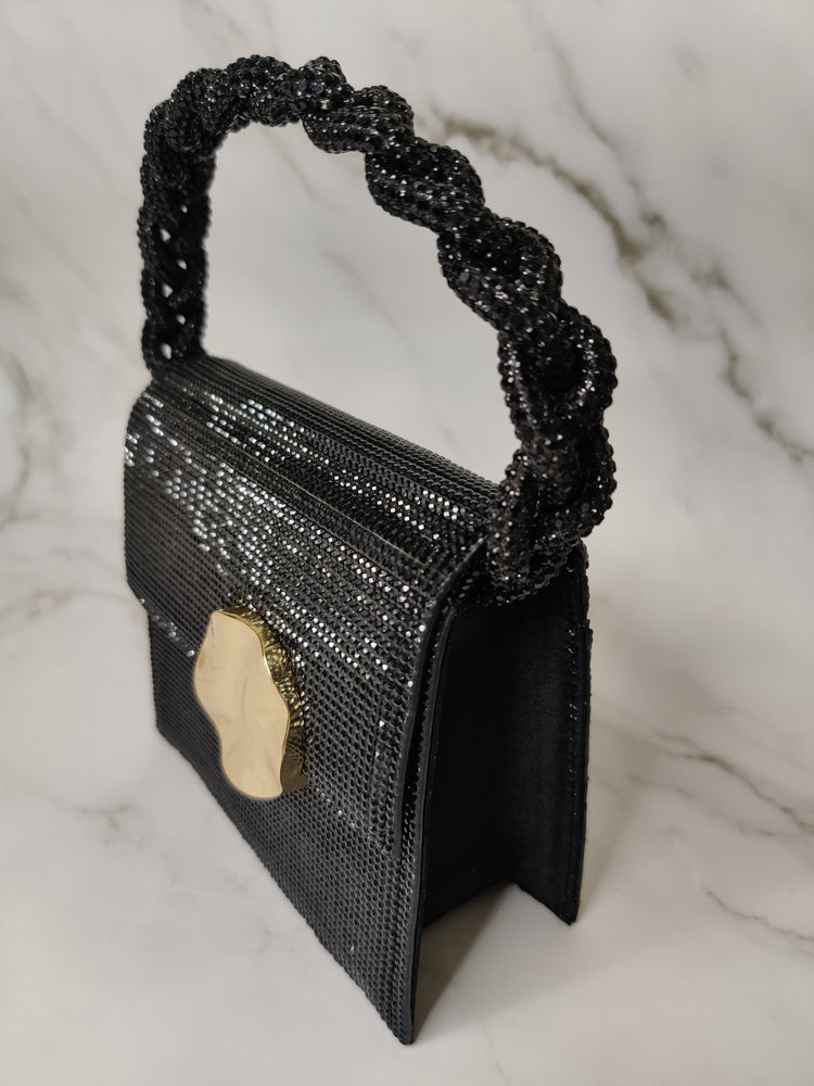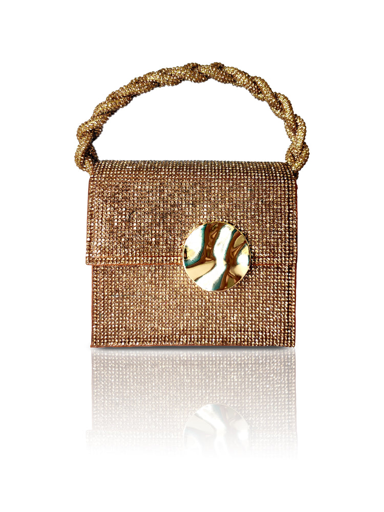 This eye-catching mini bag feels anything but outdated. Bijoux's structured design is elevated by our high-quality rhinestone material and gold hardware detail. Features a single compartment and a short handle. It's perfect to add brilliance and elegance to all looks.