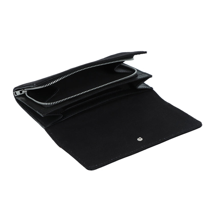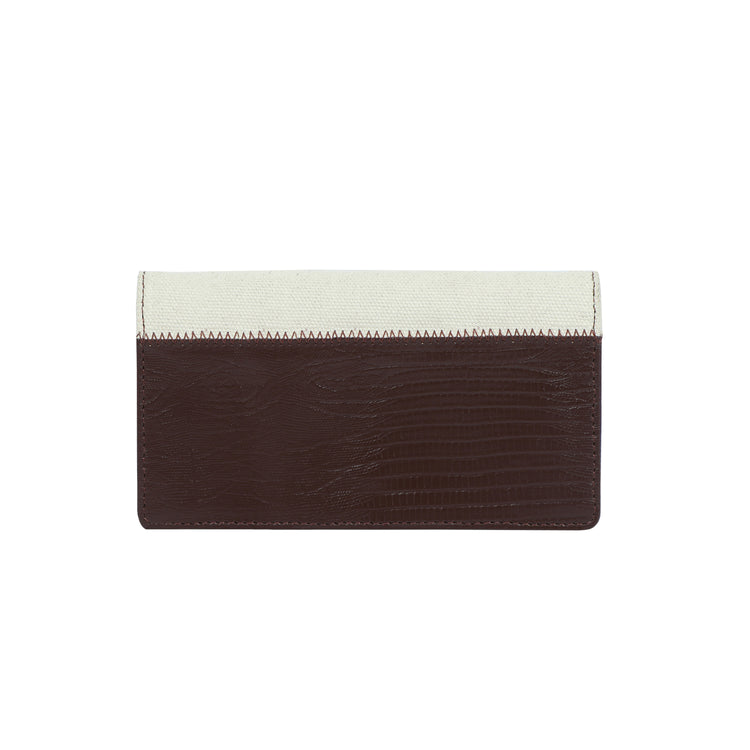 Our long wallet is simple and spacious. It features three card slots inside to fit credit cards, a zip pocket for cash, and one big pocket for other small valuables. Carry it like a clutch or slip it easily into a bag.