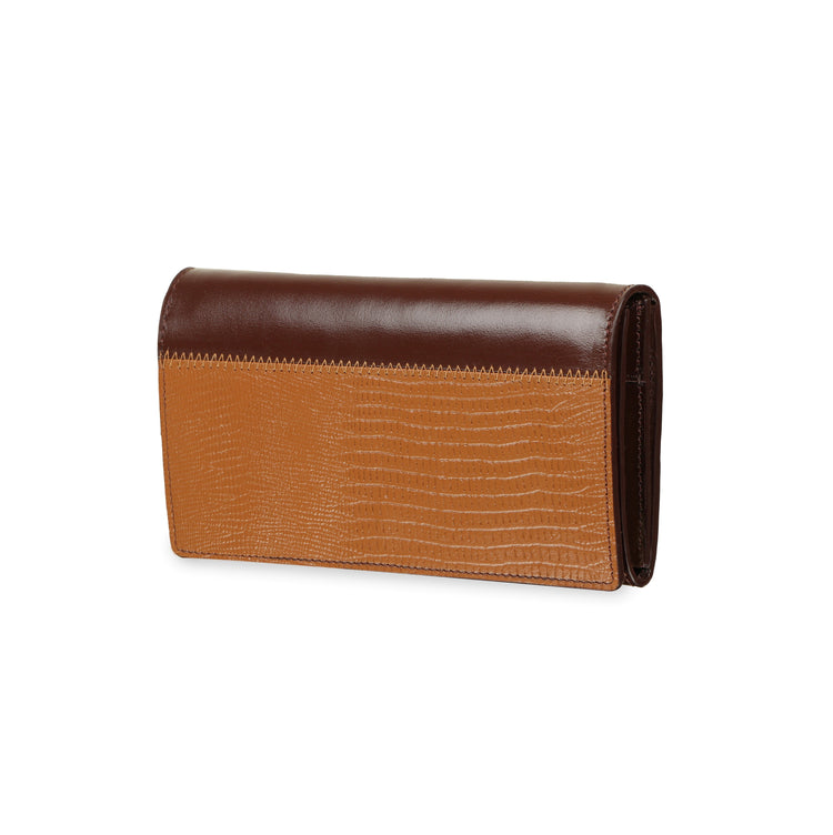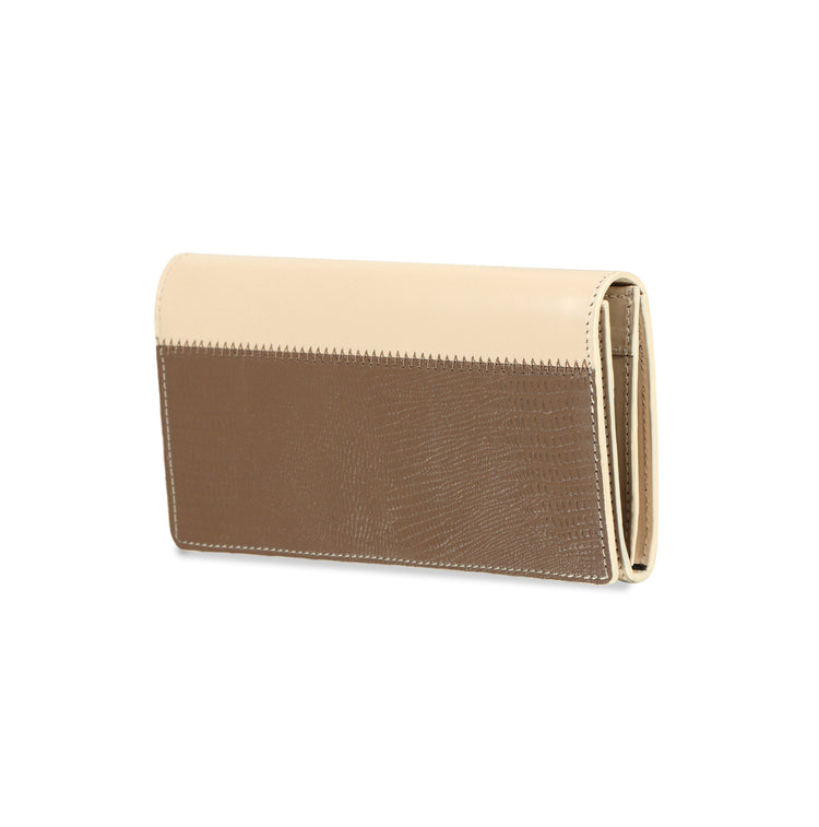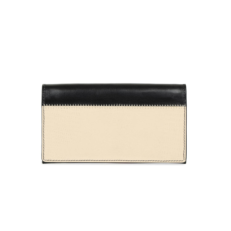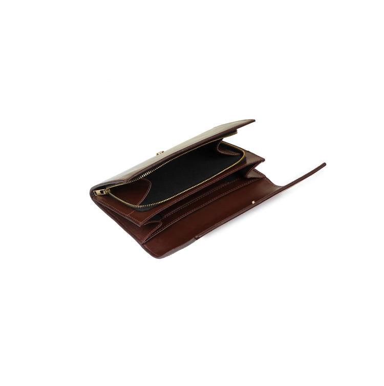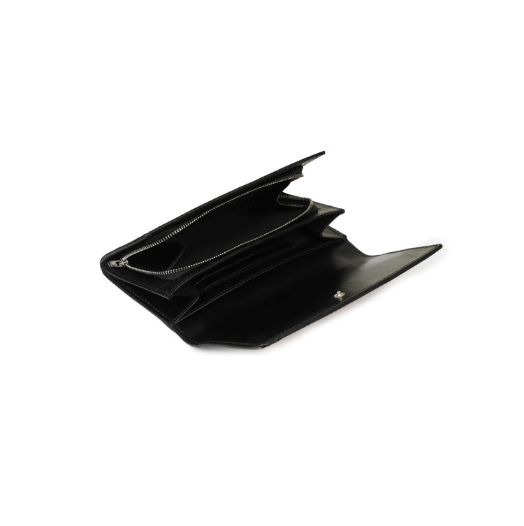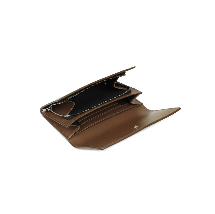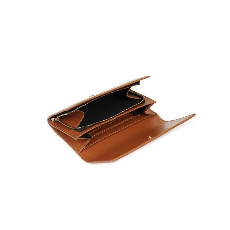 Our long wallet is simple and spacious. It features three card slots inside to fit credit cards, a zip pocket for cash, and one big pocket for other small valuables. Carry it like a clutch or slip it easily into a bag.